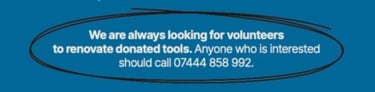 You can get involved by visiting our shed and volunteering your skills.